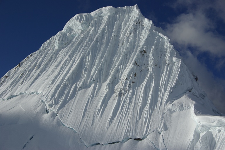El Alpamayo, junto con nuestro imponente Huascarán, son las más famosas montañas de la Cordillera Blanca y también son los principales objetivos de los montañeros que llegan por primera vez lo que tienen en su punto de mira como una montaña necesaria para su historia deportiva para el ascenso a la montaña más bella del mundo.