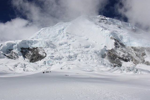 Starting at the base camp in the moraine we will reach the edge of the glacier. From there we will climb higher to get to a safer place, towards the base of a large barrier Seracs. There we will put up our camp 1 in the glacier.