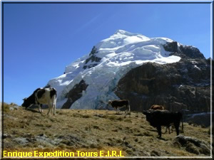 From here we drive to Llamac (3250m). Here we meet the donkey-driver and his donkeys. At 11.00 am we leave Llamac and walk to Cuartelhuain. (3900). During our walk we can enjoy the view to the first mountain tops like Ninashanca and we pass through rural villages like Pocpa and Paclla before we arrive our camping-site Cuartelhuain. Walking-time about 6-7 hours.