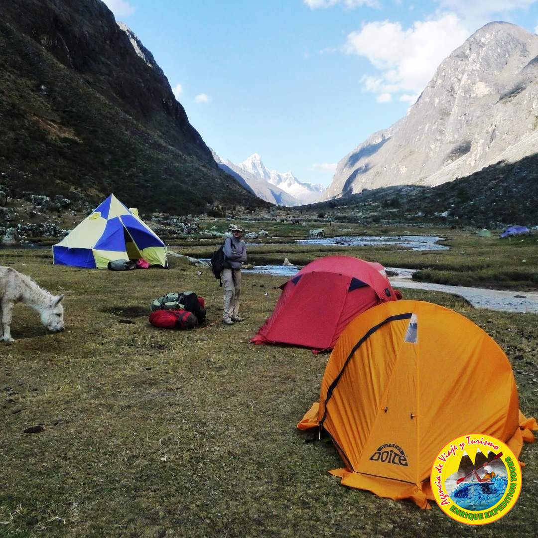 Recojo del Hotel y traslado en bus privado, pasaremos por lo hermosas pueblos de Carhuaz, Yungay donde estaremos desviando asía la parte Este de la Cordillera Blanca subiendo por la quebrada de LLanganuco, y pasaremos por las hermosas laguna de Chinancocha y Orconcocha y siguiendo nuestros recorrido estaremos ascendiendo en bus por el Portachuelo de Llanganuco, observando una hermosa vista de la Cordillera Blanca con sus principales montañas (Pisco,Chopicalqui, Chacraraju,Huascaran, Huando y la hermosa vista de las dos lagunas de la Quebrada Llanganuco ( Chinancocha, Orconcocha), estaremos llegando al poblado de Vaqueria , en donde nos espera el arriero quien es encargaran en la conducción de los burros quienes llevaran nuestros equipaje personal como de campamento, Iniciaremos la caminata 3 horas aprox. hasta Quebrada de Paria. (3810 m.).