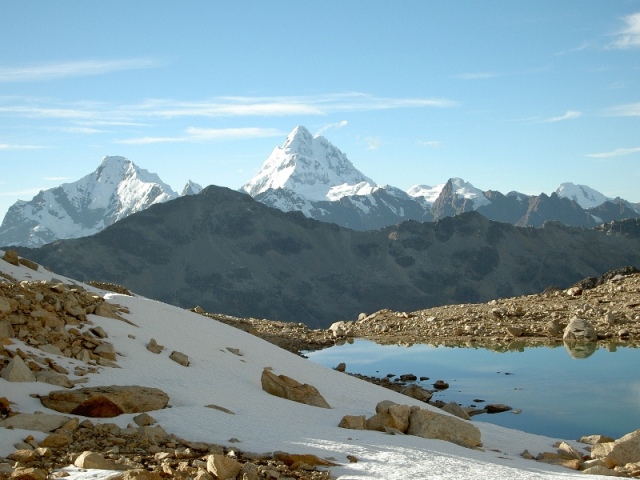Este día nos dirigiremos por un sendero cuesta a arriba llegando a la laguna de Cuchillacocha (4625m.) situado al pie de los Nevados Huapi (5415m.) Pucaranra (6156m.) y Chinchey (6222.m.) en este lugar al costado de pequeñas lagunas situaremos nuestro campamento.