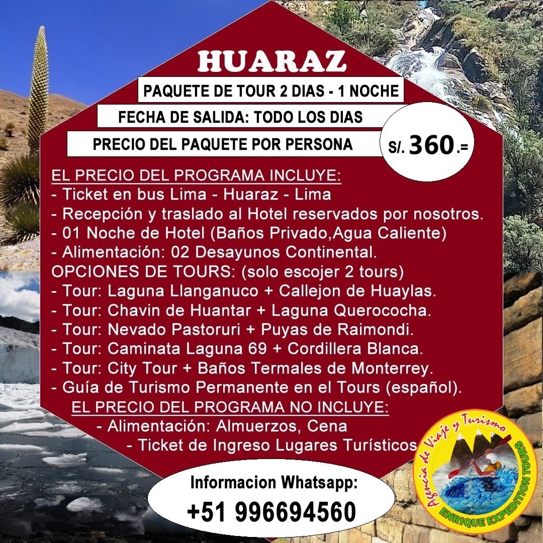 PROGRAMAS PAQUETES TURISTICO - HUARAZ |