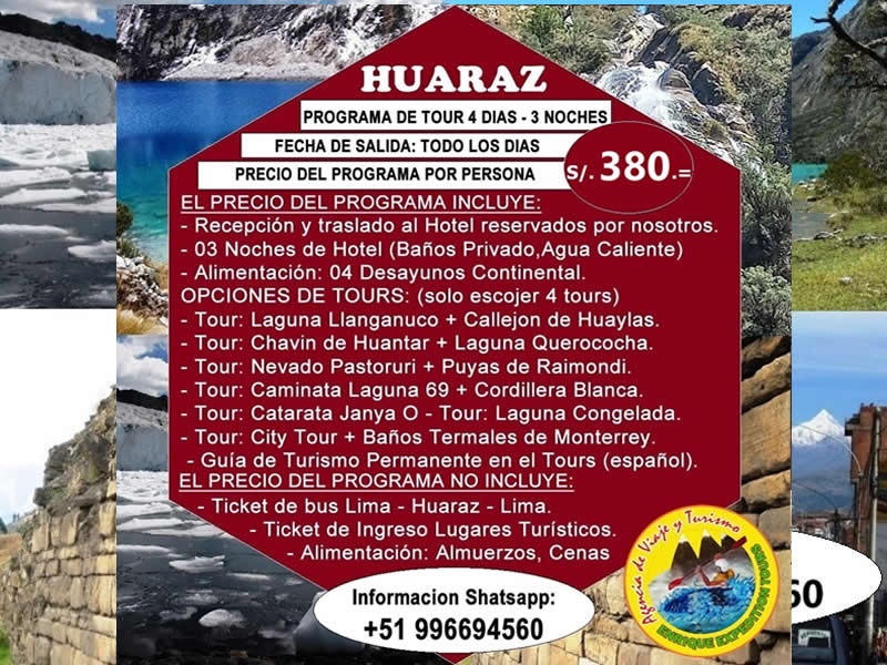 - Para su información nuestro agencia de viajes no tiene oficina en Lima ya que somos una Agencia de viajes tours Operador en Huaraz. |