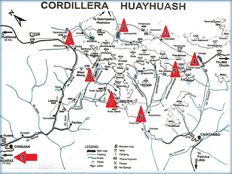 Se pasa el último paso de Pampa de Llamac (4300). Observaremos por última vez parte de los nevados de la Cordillera Huayhuash., para luego dirigirnos a Chiquián (3400) se viajará por el mismo sendero por el cual iniciamos nuestro viaje. Traslado de Chiquián a Huaraz fin de nuestros servicios.