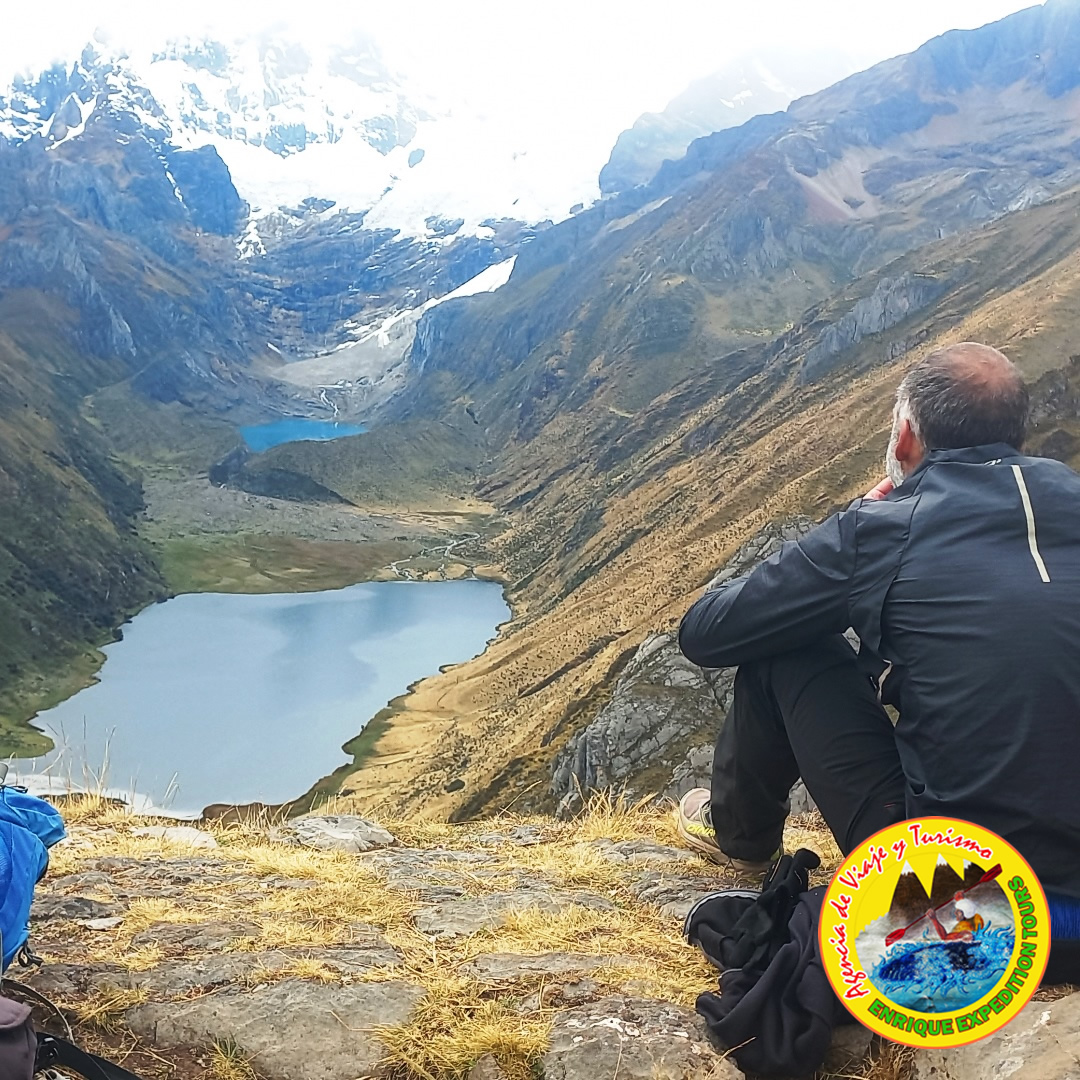 After breakfast we start walking towards the lagun to Siula, first passing through the Gangrajanca lagoon, then we pass through the Siula lagoon where we begin to climb to the viewpoint of the three lagoons; from where you can take panoramic photographs of the mountains; jirishanca chico (5445), Yerupaja grande (6632masl), yerupaja chico (6121masl), jirishanca gran de (6094), and the siula chico (6634msnm), Yerupaja grande which is the second highest peak in Peru (6634masl). This viewpoint is considered the second most beautiful sight in the huayhuash. We continue the walk until we reach the Siula pass at an altitude of 4800msnm, from there we descend to the Carnicerococha lagoon, then we