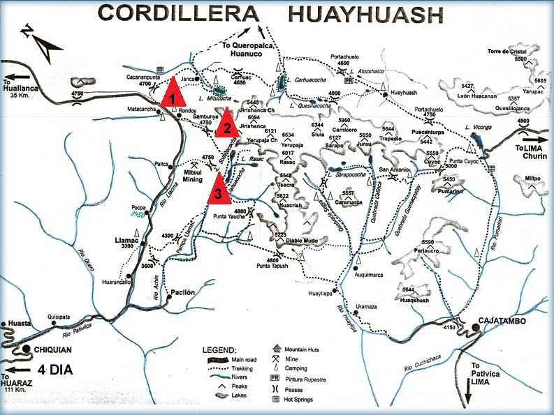 MAPA DE LA RUTA DEL MINI TREKKING HUAYHUASH. |