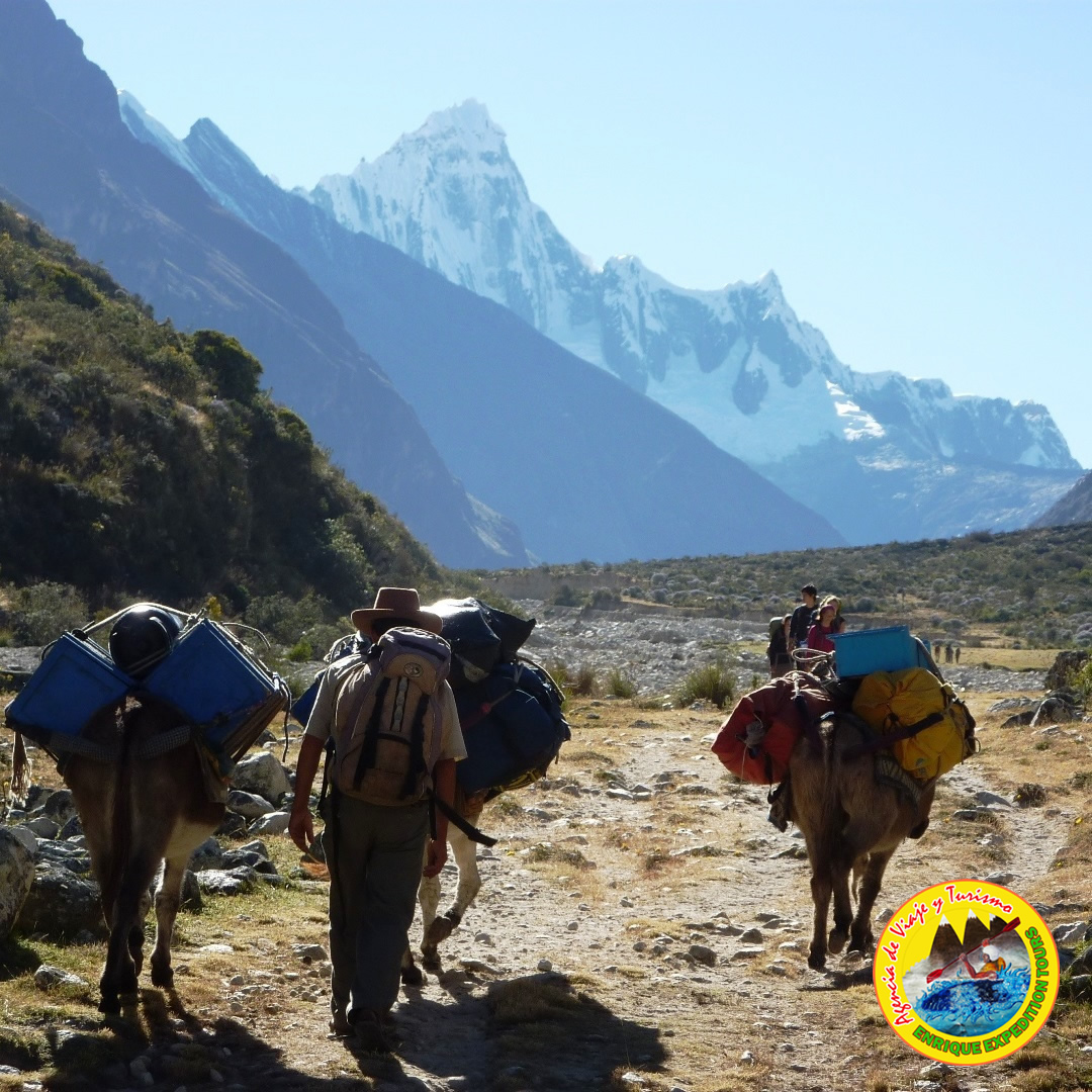 Recojo del Hotel y traslado en trasporte privado de Huaraz hasta la ciudad de Yungay - Caraz, desde este lugar estaremos desviando hacia la porte Este de la Cordillera Blanca hasta el poblado de Cashapampa en donde nos esperan el arriero que conducirá los burros quienes se encargaran en para trasladar el equipo persona y de campamento, después estaremos comenzando el trekking hasta Llamacorral (3760). Campamento.
