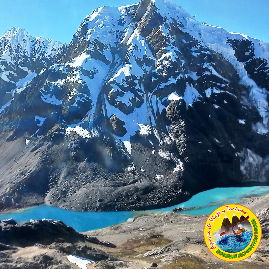 After breakfast we start walking towards the lagun to Siula, first passing through the Gangrajanca lagoon, then we pass through the Siula lagoon where we begin to climb to the viewpoint of the three lagoons; from where you can take panoramic photographs of the mountains; jirishanca chico (5445), Yerupaja grande (6632masl), yerupaja chico (6121masl), jirishanca gran de (6094), and the siula chico (6634msnm), Yerupaja grande which is the second highest peak in Peru (6634masl). This viewpoint is considered the second most beautiful sight in the huayhuash. We continue the walk until we reach the Siula pass at an altitude of 4800msnm, from there we descend to the Carnicerococha lagoon, then we