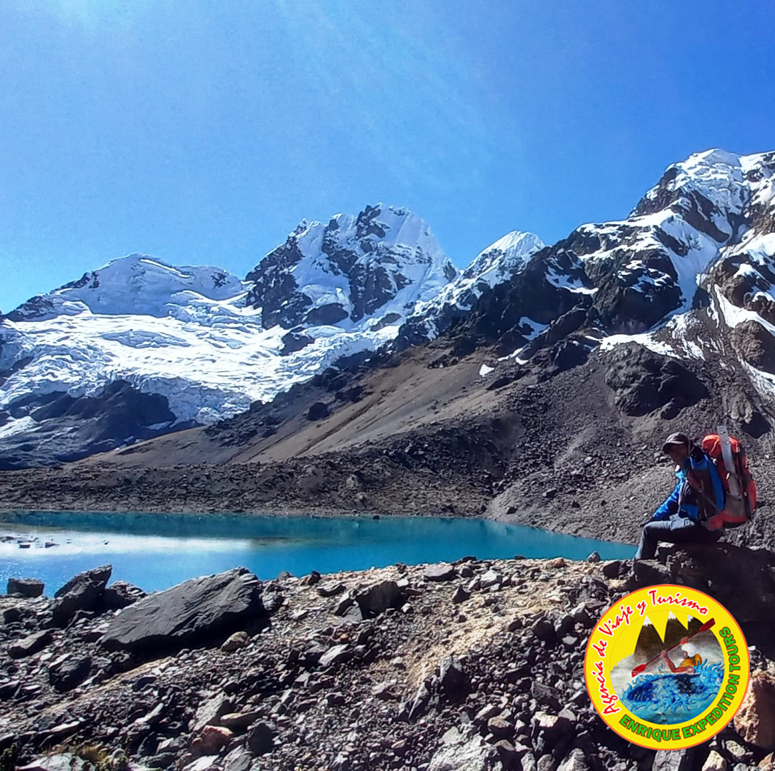 After breakfast we start walking towards the lagun to Siula, first passing through the Gangrajanca lagoon, then we pass through the Siula lagoon where we begin to climb to the viewpoint of the three lagoons; from where you can take panoramic photographs of the mountains; jirishanca chico (5445), Yerupaja grande (6632masl), yerupaja chico (6121masl), jirishanca gran de (6094), and the siula chico (6634msnm), Yerupaja grande which is the second highest peak in Peru (6634masl). This viewpoint is considered the second most beautiful sight in the huayhuash. We continue the walk until we reach the Siula pass at an altitude of 4800msnm, from there we descend to the Carnicerococha lagoon, then we