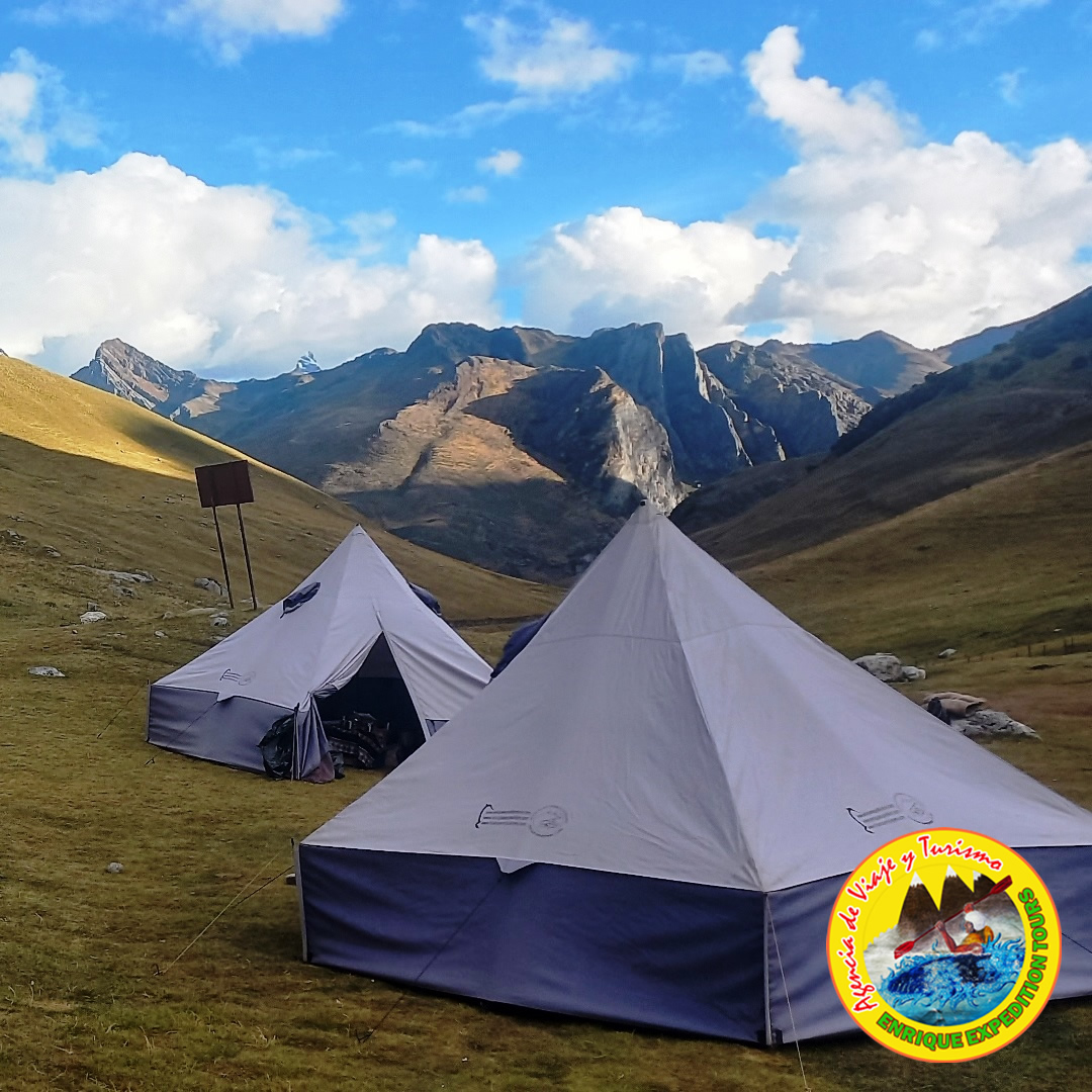 After breakfast, we start the hike climbing until we reach the Carhuac park; which is located at (4650msnm) is a very easy ascent of approximately 2 hours, then we descend until we reach the camp where you can see a beautiful view with high peaks that pass the 6000msnm and with a very beautiful and large lagoon with panoramic views, it is considered the most beautiful first camp in the Huayhuash circuit. Then lunch. (Travel 11km – 4 to 5 hours). End of the day.